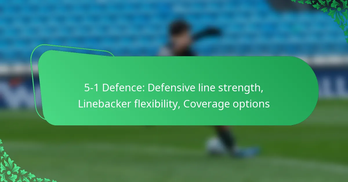 Coverage schemes in the 5-1 defence primarily focus on balancing the responsibilities of the defensive line and linebackers. The defensive line’s strength helps control the run game, while the linebackers provide flexibility in coverage. This combination allows for effective responses to various offensive plays.