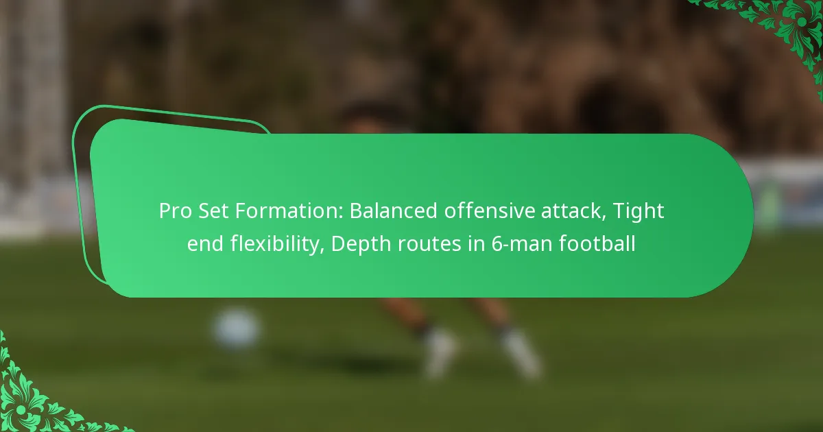 The Pro Set formation in 6-man football is an effective offensive strategy that emphasises balance by incorporating two running backs and two wide receivers. This setup not only enhances flexibility in play-calling but also allows for depth in offensive routes, making it easier to adapt to defensive schemes. Additionally, the inclusion of tight ends adds versatility, enabling teams to execute both blocking and receiving roles effectively.