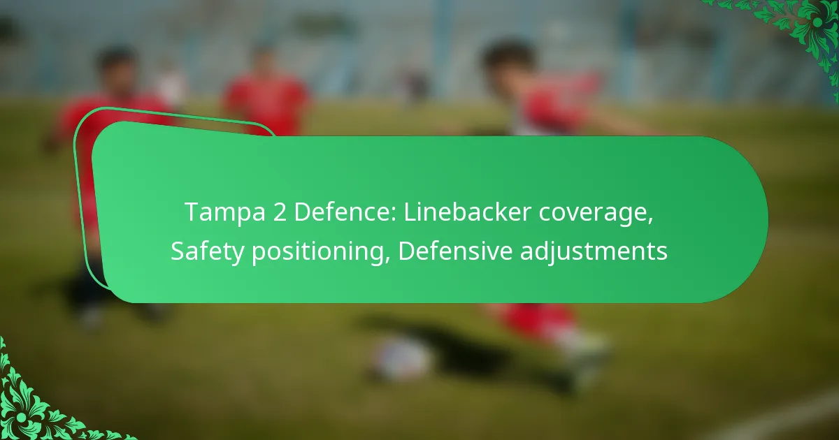 Teams can make defensive adjustments in the Tampa 2 by analysing offensive formations and adapting their linebacker and safety alignments accordingly. Effective communication and in-game adjustments are crucial for countering offensive strategies and maintaining defensive integrity.